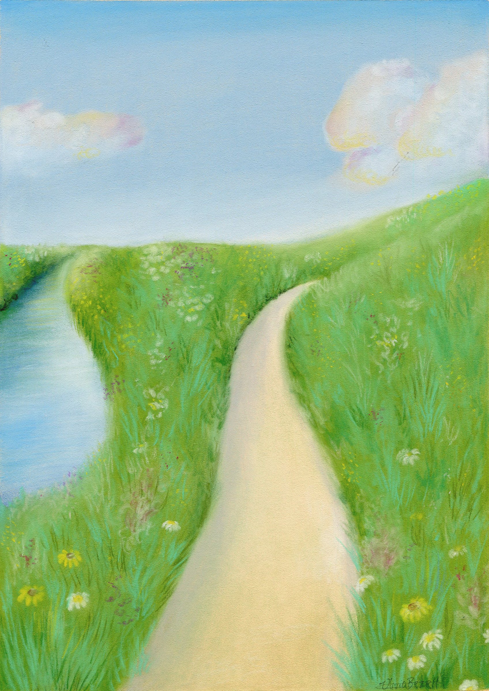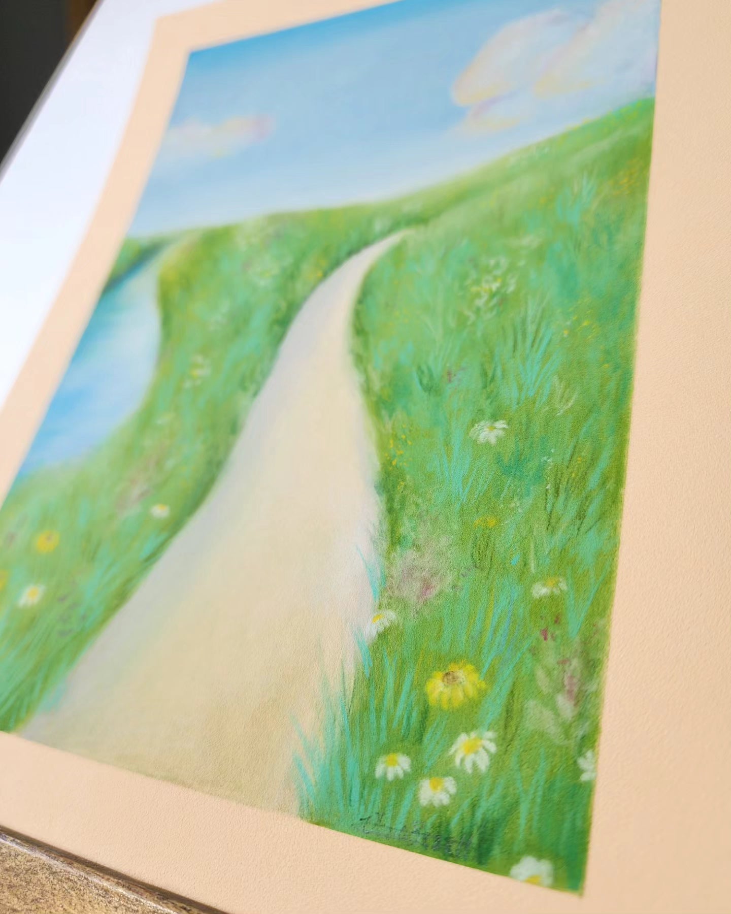 A pastel pencil landscape drawn on pastelmat paper. The first piece in a series of brand new works with a brand new medium.