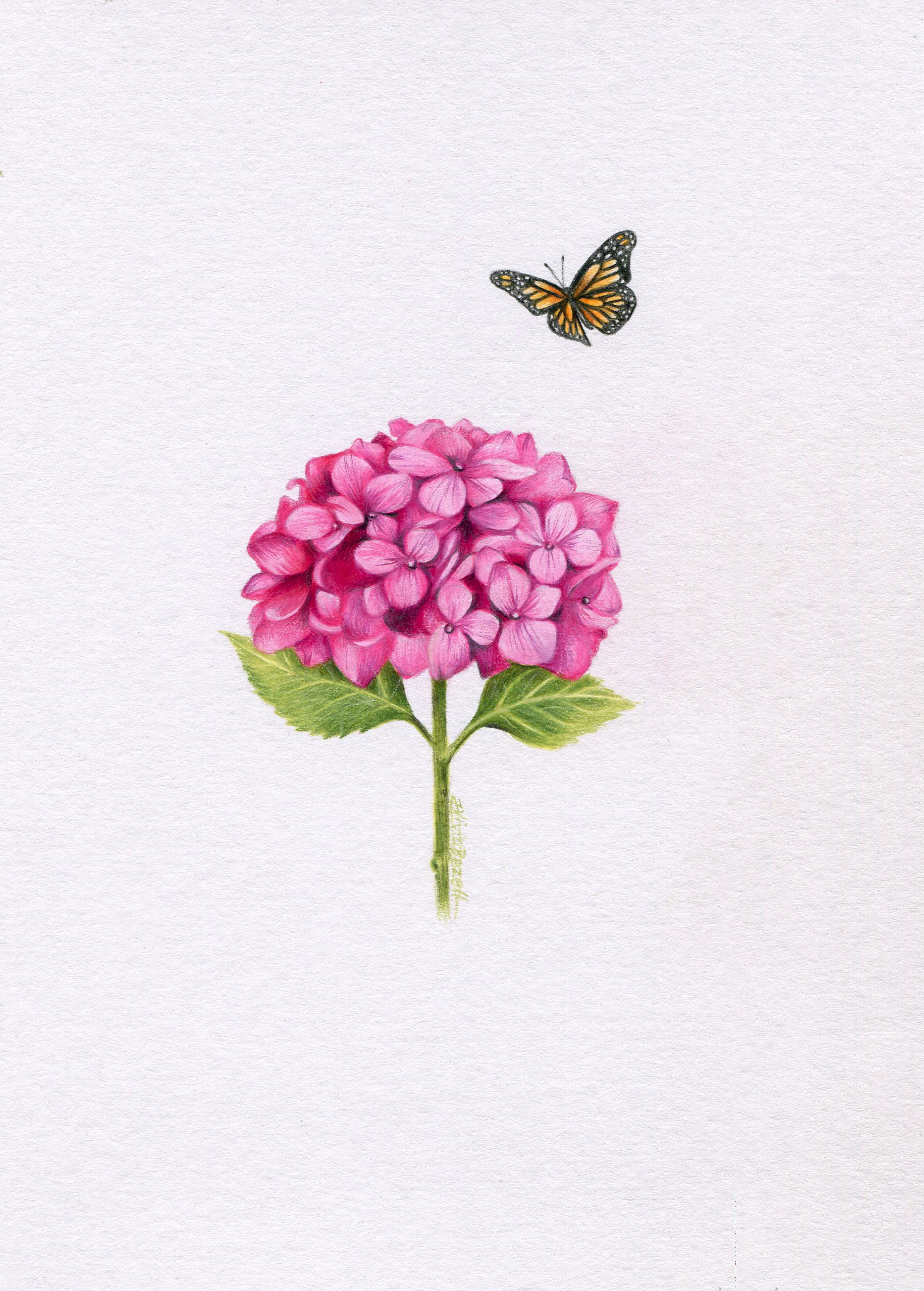 Mini one-off original 'Hydrangea and Butterfly 2'