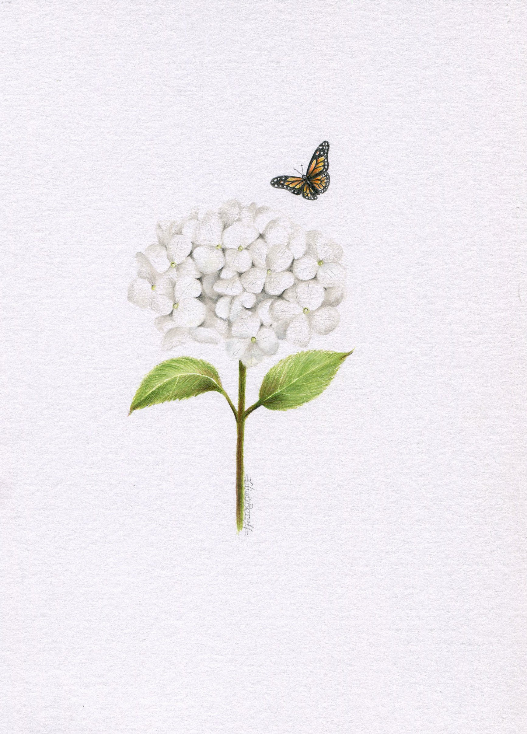 Mini one-off original 'Hydrangea and Butterfly 4'