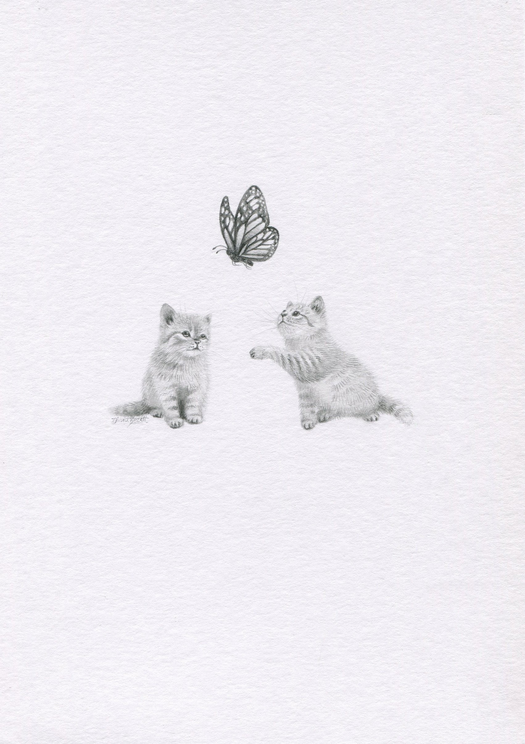 Mini one-off original 'Kittens and Butterfly 2'