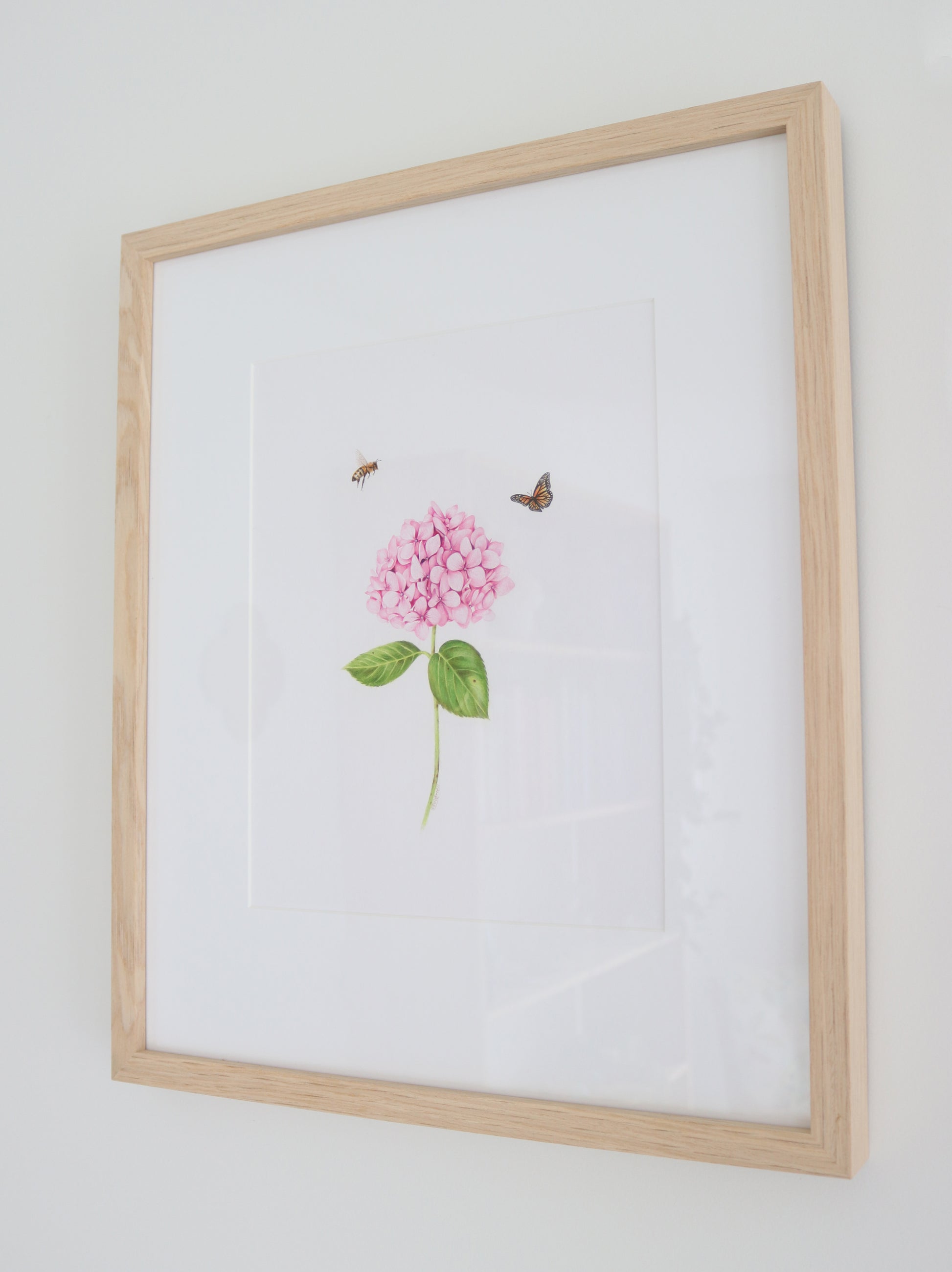 Original 'Pink Hydrangea, Bee and Butterfly'