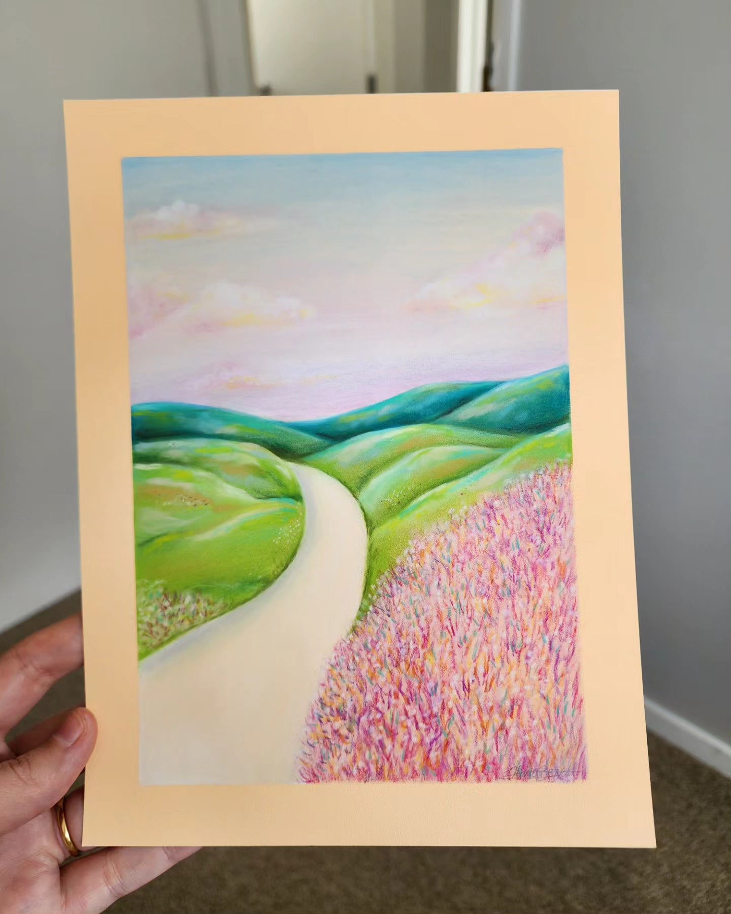A pastel pencil landscape drawn on pastelmat paper. The third piece in a series of brand new works with a brand new medium. This piece in particular is my personal favourite!