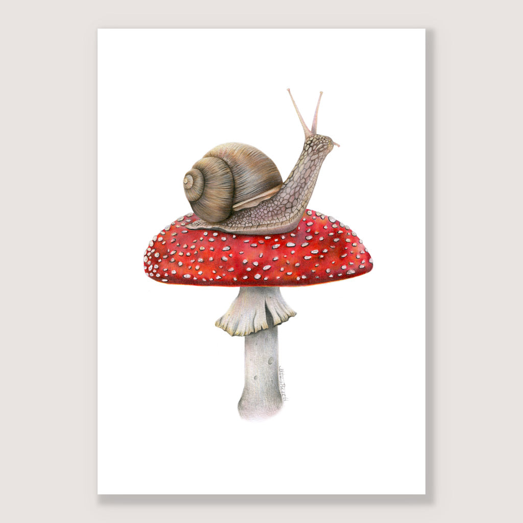 Snail on Mushroom Print